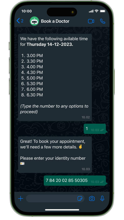Booking doctor appointments is now remarkably simpler and more intuitive than ever before. Patients can find the right care and initiate the process right within the familiar WhatsApp interface.